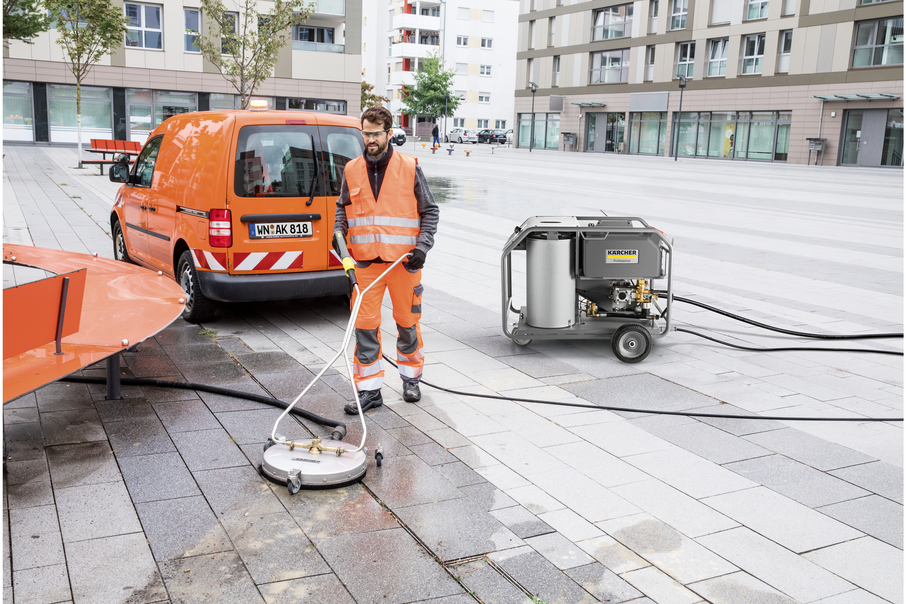 De nieuwe HDS 8/20 De heetwater hogedrukreiniger maakt indruk met zijn krachtige dieselmotor en robuuste Kärcher krukaspomp, ook als er geen stroomaansluiting beschikbaar is.