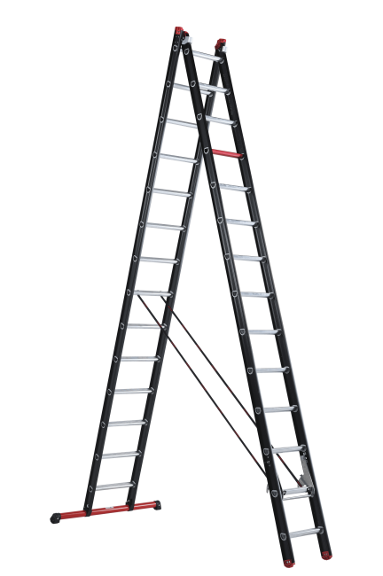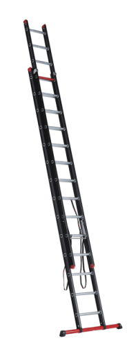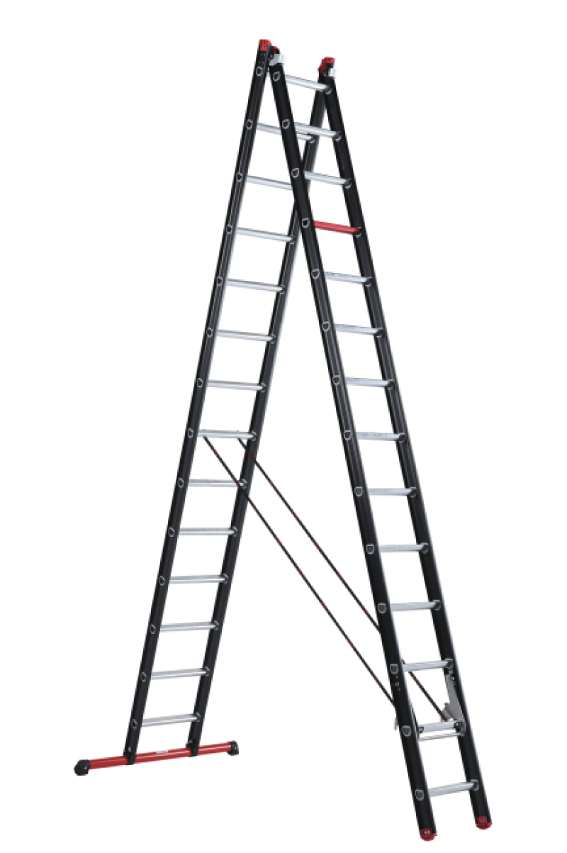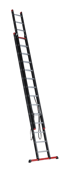 Met een indrukwekkende uitgeschoven lengte van 6,87 meter en royale sportafstand van 27 centimeter is geen klus te hoog gegrepen. De zwarte coating geeft de ladder niet alleen een professionele uitstraling, maar werkt ook vuilafstotend, wat het onder
