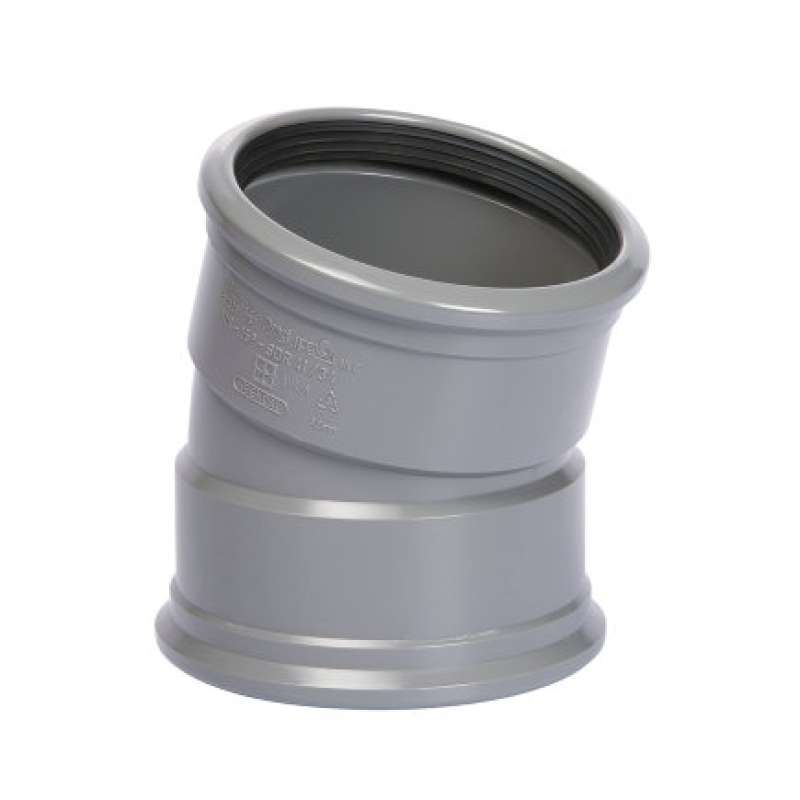 Deze 15° bocht is uitgevoerd in 2x manchet en wordt gebruikt voor buitenriolering.