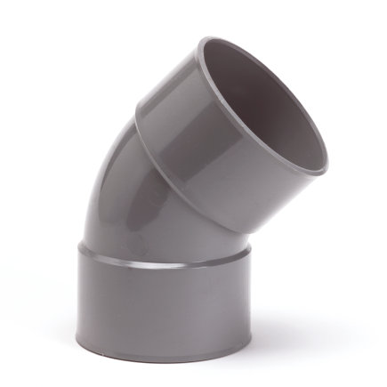 PVC BOCHT 45°, 2X INWENDIG LIJM, GRIJS,
