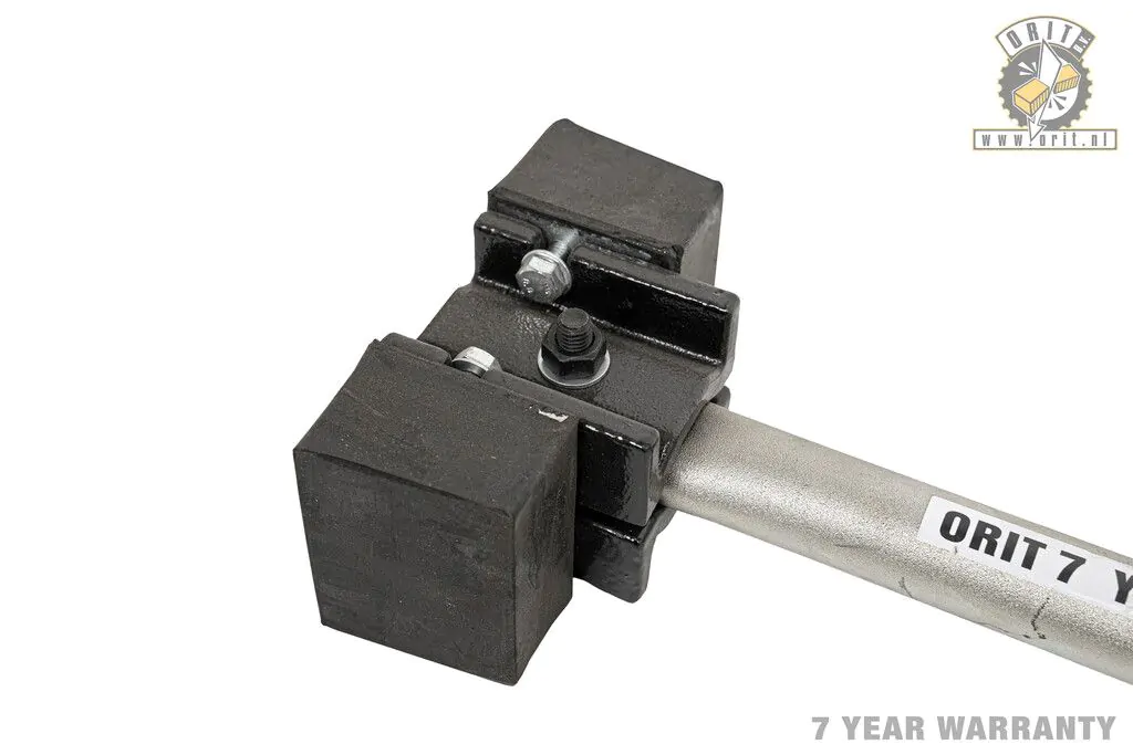 Orit Richthamer van 3700 gram met lange steel voor ergonomisch rechtop werken. Ideaal voor het uitlijnen van straatstenen. Slijtvaste, verwisselbare rubberen doppen die de hamer rechtop laten staan.