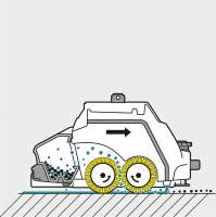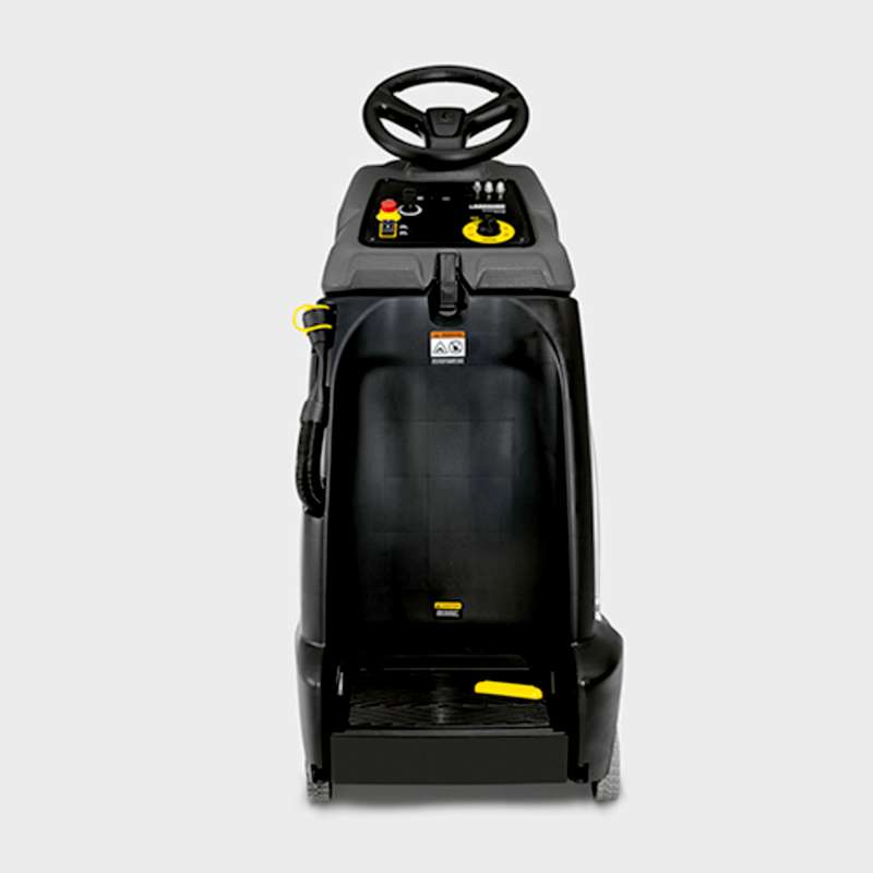 De uitzonderlijk compacte en sterke BR 55/40 RS Bp step-on schrob-/zuigmachine combineert de wendbaarheid van een handgeleide machine met de snelheid van een zitmachine. De kleine draaicirkel van ongeveer 120 cm maakt de machine ideaal voor gebruik i