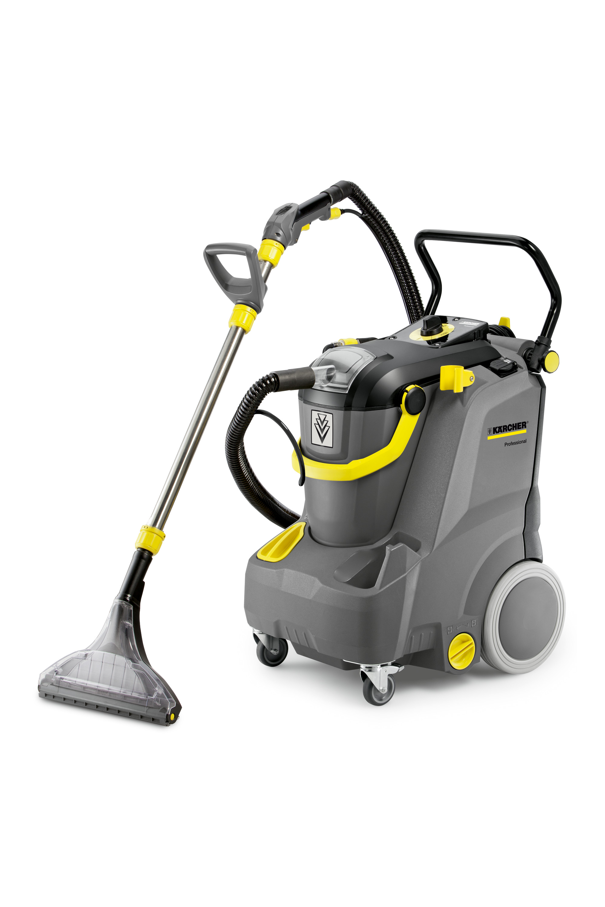 De krachtige Puzzi 30/4 sproei-/extractiemachine is met een geluidsniveau van 66 dB (A) de stilste stof-/waterzuiger in zijn klasse. Met het schoonwaterreservoir van 30 liter kunnen grote oppervlakken zonder onderbreking worden gereinigd. De oppervla